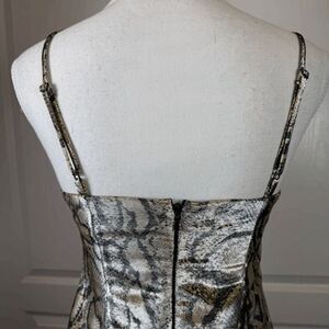 Topshop Metallic Snakeskin Two Tone Mini Dress Gold Black Size 4. Adjustable straps, zipper back. Excellent condition. See photos for details and measurements. View my closet to add other items and bundle to save with one shipping fee!