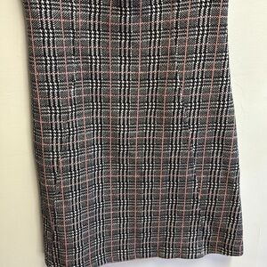Stylish backless dress with a plaid pattern. Features a deep V-neck and sleeveless design. So cute layered with black top underneath for fall and winter. Cute Zipper in back of dress. Size 4, 15” pit to pit, 32” length.