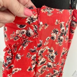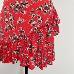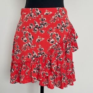 Topshop Mini Skirt with ruffle, coral with floral print, 10, NWOT