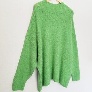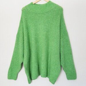 Topshop Mock Neck Oversized Chunky Knit Tunic Sweater Longline M 8/10 Green Cozy