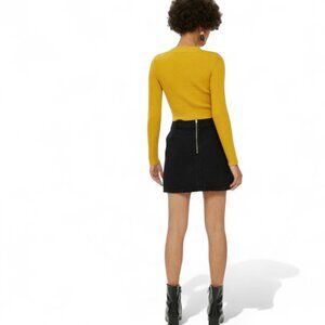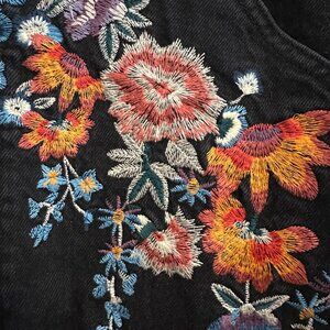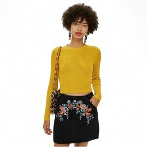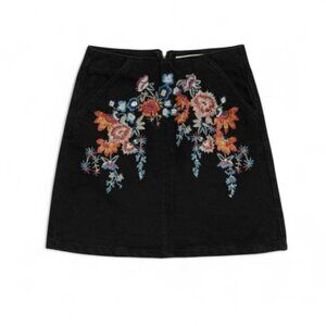 Topshop Moto Black Denim Skirt with Floral Embroidery and Zipper Back, 8