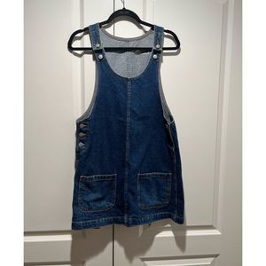 Topshop Moto Pinafore Dress Blue Medium Wash Jumper Overalls Skirt Cotton