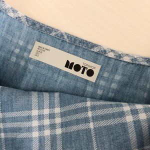 Topshop Moto light blue front tie plaid checkered square neck spag dress