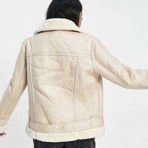 Supersoft fleece lining peeks out at the lapels of this stylish, essential moto jacket. 8 US (fits like 6-8), in CREAM color.