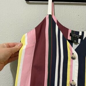 Topshop Multicolor Vertical Striped Spaghetti Strap Button Front Mini Dress 6
