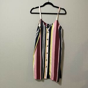 Topshop Womens Multicolor Striped Spaghetti Strap Button Front Mini Dress Sz 6