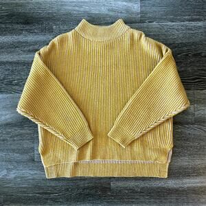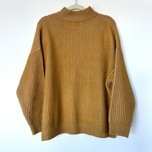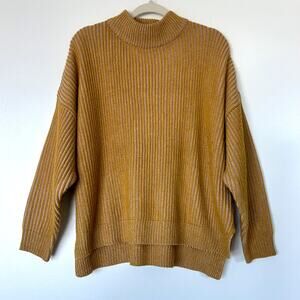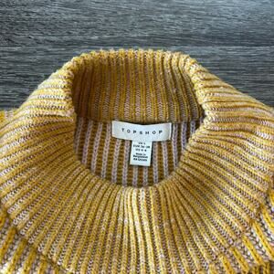 Topshop Mustard Yellow Ribbed Mock Neck Pullover Sweater Size 6 Oversized Knit