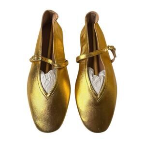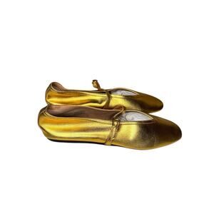 Topshop NEW Babette Gold Metallic Leather Ballet Flats US Size 7 Mary Jane Strap