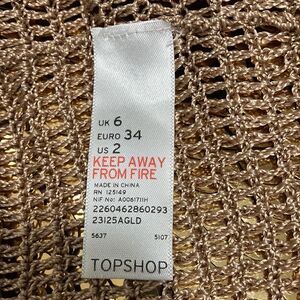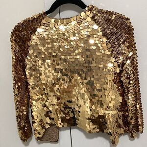 Topshop NWOT gold sequin disk open front jacket with long sleeves and knitted tonal lining.
