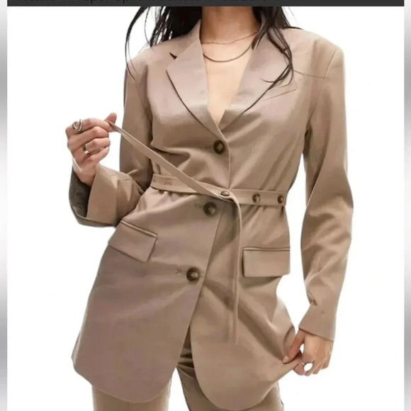 ![Topshop NWT Belted Waist Long Blazer Tan Women’s Size 2 [retail $110] - Picture 8 of 15](https://di2ponv0v5otw.cloudfront.net/posts/2025/10/26/68feb9daed788dad042f0646/m_68feb9dded788dad042f067d.jpeg)