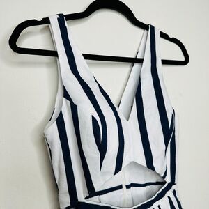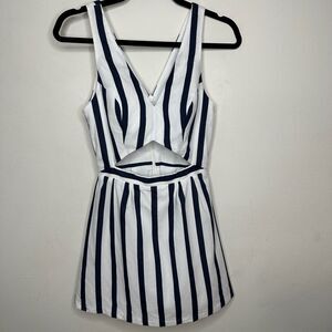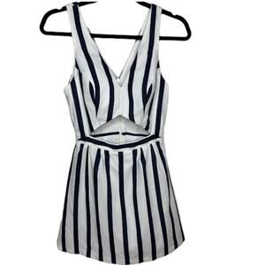 Topshop Navy & White Stripe Sleeveless Triangle Front Stomach Cutout V-Front Zip Back Mini Dress