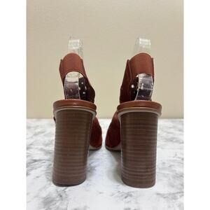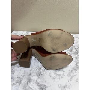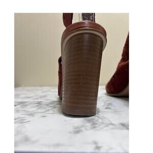 Topshop Nuvo Lasercut Suede Leather Sandal 39/8 Block Heel Open Toe Autuminal Minimalist Chic Block Heel Rusty/burnt orange.