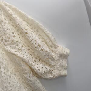 Topshop One Shoulder Lace Puff Sleeve Lined Cropped Top Side Zip Ivory Size 8
