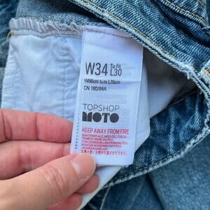 Topshop Original High Waisted Mom Jean Mid Blue Size 34 x 30 100% Cotton $74