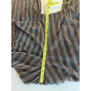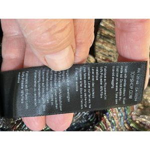 Add some glamour to your wardrobe with these Topshop pants. The sheer metallic mesh fabric gives off a party-ready vibe, while the elastic waist ensures comfort all night long. The wide-leg design and harem style add a touch of sophistication to the overall look. These pants are perfect a cocktail party or a night out with friends. The lightweight and breathable material makes them ideal for all seasons, and the quick-dry and wrinkle-resistant features make them easy to care for. Available in size 4-6 US and waist size 24-34”, these pants are a must-have for any fashion-forward woman. No flaws.