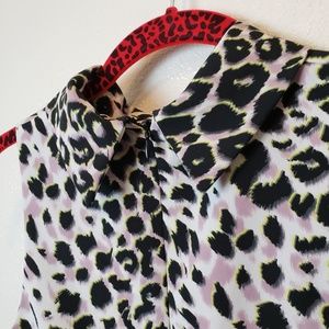 Topshop Pastel Purple + Yellow Leopard Print Sleeveless Mock Neck Size 4 Dress