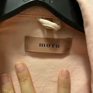 Cute pale pink denim jacket by Moto/Topshop. Perfect preloved condition! No tears, holes or stains.