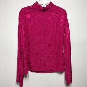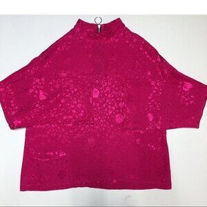 Topshop Pink Floral Kimono Blouse Mock Neck Size 6
