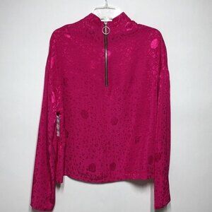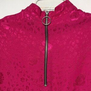 Topshop Pink Floral Kimono Blouse Zipper Back Long Sleeve Mock Neck Size 6
