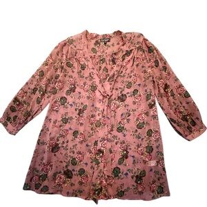 Topshop Pink Floral Oversized Sheer Tunic Blouse Size2/Small