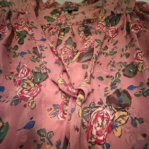 Chic pink blouse with vibrant floral print. Lightweight and stylish. Perfect for any occasion.
