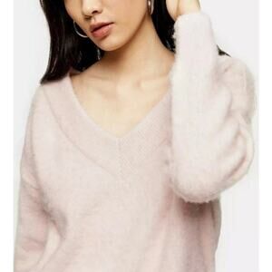 Topshop Pink V-Neck Knitted Brushed Bardot Fuzzy Pullover Sweater Women's 4/6