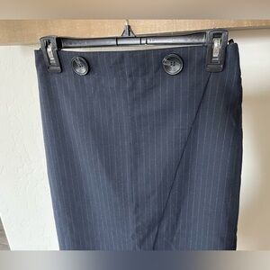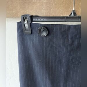 Topshop| Pinstripe Midi Skirt with Oversized Buttons & Cross Over Detail•••
