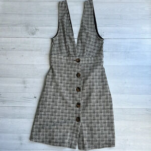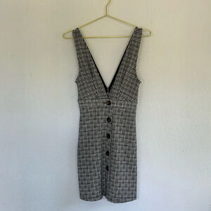 Topshop Plaid Stretch Low V Knit Button Up Dress US 2