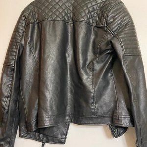 Quilted shoulder panels and a multitude of zippers rev up the biker-girl cred of a moto jacket cut from lightweight faux leather. Used but still has lots of life left!