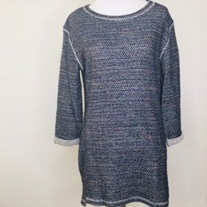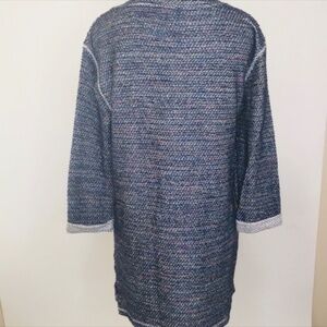 Navy with Rainbow thread woven into the knit Cuffed sleeves