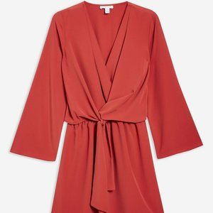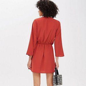 Topshop knot tie mini dress. Red/rust color. Size 12. New with tags. 100% polyester. Comfortable, flowy dress.