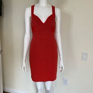 Topshop Red Plunge Sweetheart Ribbed Bodycon Bandage Dress Size 6