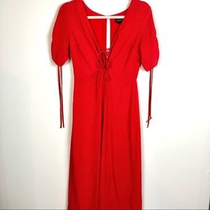 Topshop Red and White Polka Dot Short Sleeve Midi Dress Size 2