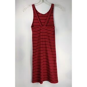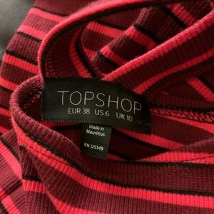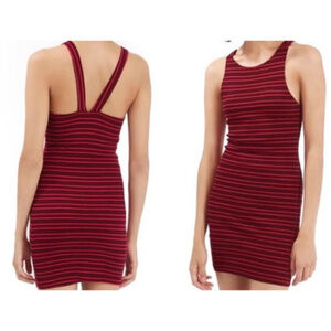 Topshop racerback bodycon dress, striped/ribbed in red and burgundy. In like new condition! (Shoes and jacket not included). Length 32.5"
