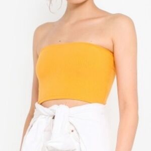 Women's ribbed knit bandeau, crop top. By topshop. Size 10. 91% Viscose, 9% Elastane. 7C002