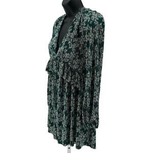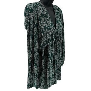 Topshop Romper Women’s Size 2 – Green Floral Print, Deep V-Neckline, Wide Leg Silhouette with Flowy Pleated Detail, One-Piece Design, Long Sleeve with Elastic Cuff, Smooth Satin-Like Fabric for a Luxe Feel, Back Zip Closure, Lightweight and Drapey Fit, Flattering and Feminine Look, Ideal for Summer Parties, Vacations, Brunch Dates, or Night Out, Modern Statement Style with Romantic Flair.