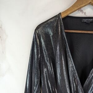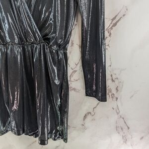 Topshop Romper Womens Medium Silver Metallic Holographic Shiny Shimmer Jumpsuit