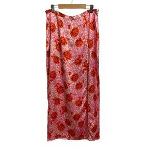 Topshop Rose Satin Maxi Skirt and Smocked Long Sleeve Top Set Size 8 NWT