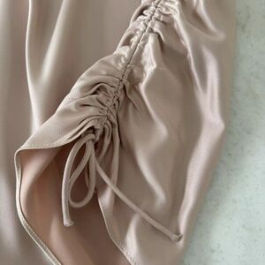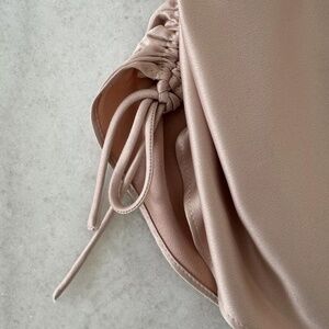 This Topshop mini slip dress is a stunning addition to any wardrobe. The satin fabric drapes beautifully, while the ruched detailing adds texture and interest. The dress comes in a gorgeous pink color and is a US size 4. It features a short length that is perfect for a night out or special occasion. The slip dress style is both classic and on-trend, making it a versatile piece that can be dressed up or down. Don't miss out on this must-have item for fashion-forward women!