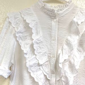 Crinkled poplin fabric, front button closure, rolled sleeve