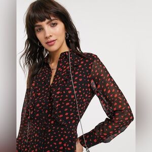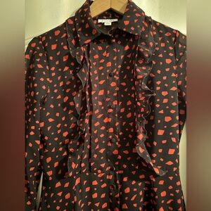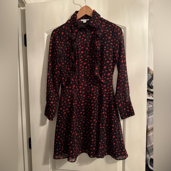 Topshop Black and Red print shirt dress with ruffle accent near buttons. Never worn, perfect condition.