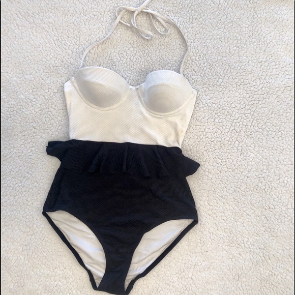 ★ Topshop Ruffle black and off-white onepiece swimsuit