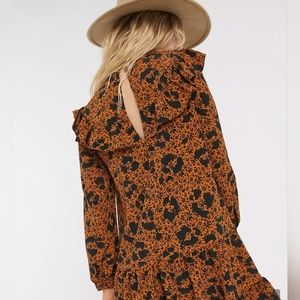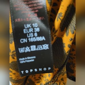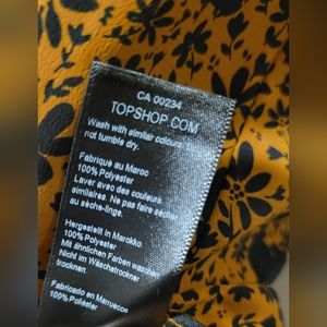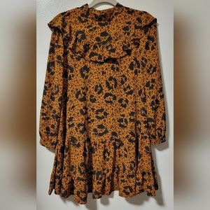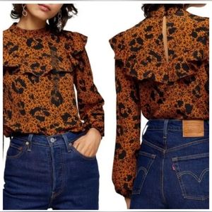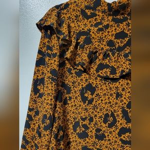Topshop Burnt Orange Black Floral Ruffle Long Sleeve size 6.