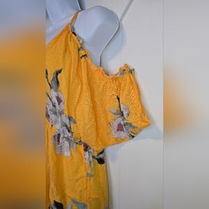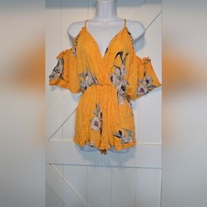 Topshop S Yellow Floral Cold Shoulder Tie-Back Boho Romper Tropical Vibes