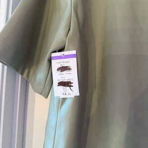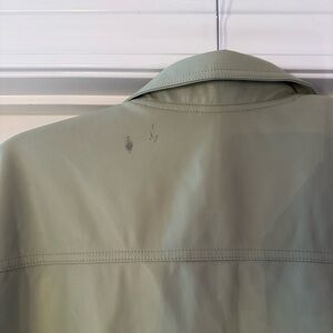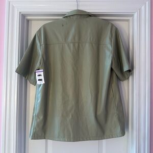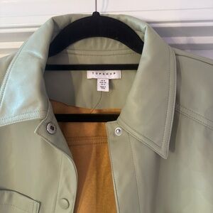 Topshop Sage Green Leather Jacket Short Sleeve Button Up Collar