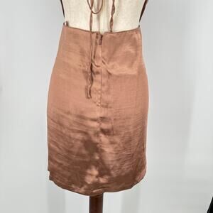 Topshop Satin Bronze Mini Strappy Backless Square Neck New Dress Womens