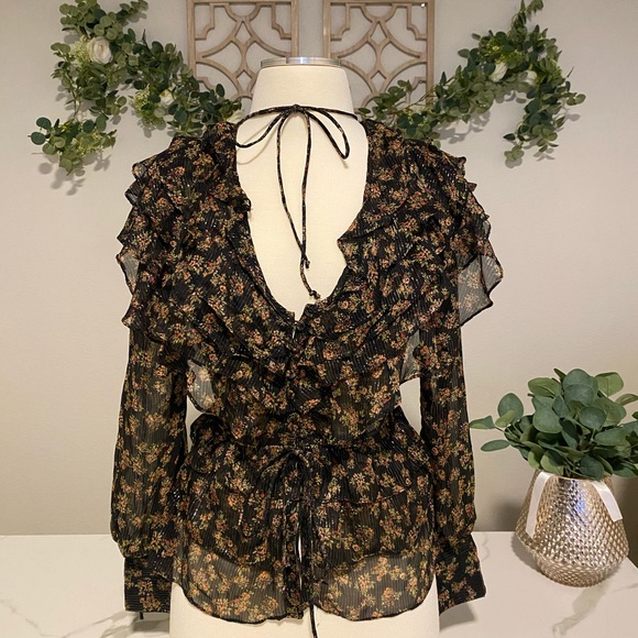 Topshop Sheer Ruffle Blouse