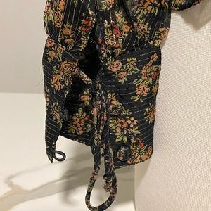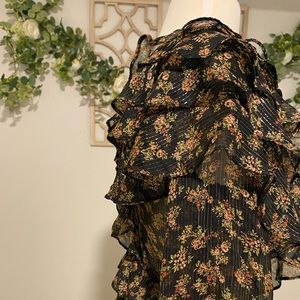 •Black Multi floral with silver accent lines