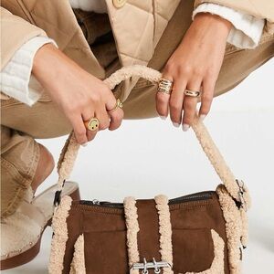 Topshop Sherpa Trim Buckle Shoulder in Brown