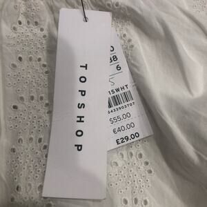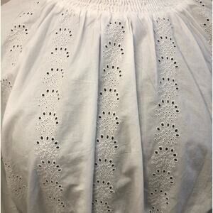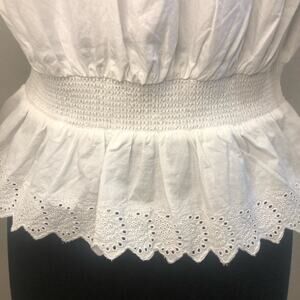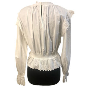 Topshop Shirred Embroidered White Ruffle Blouse Blouson Sleeves Size 6 Victorian